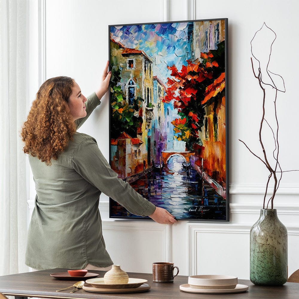 تأتي جميع الإطارات لدينا مزودة بنظام تثبيت سهل لتعليق اللوحة على الحائط.