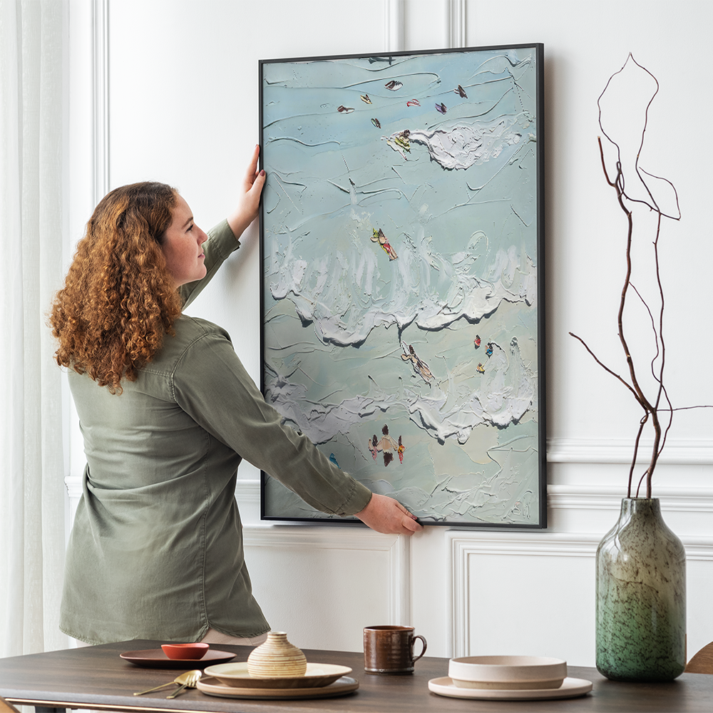 تأتي جميع الإطارات لدينا مزودة بنظام تثبيت سهل لتعليق اللوحة على الحائط.