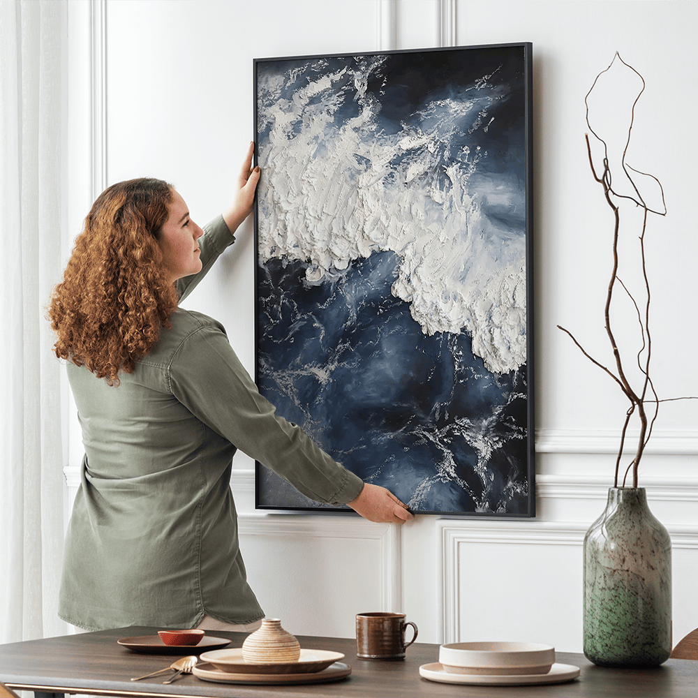 تأتي جميع الإطارات لدينا مزودة بنظام تثبيت سهل لتعليق اللوحة على الحائط.
