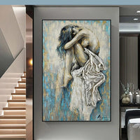 Add a touch of melancholy by adding "Graceful Solitude" to your space. This beautifully executed painting captures a woman alone, her sadness palpable as tears fall. The coverless figure weeps in a moment of poignant reflection, evoking deep emotions. Perfect for those who appreciate the beauty in sorrow, this artwork will resonate with viewers and add emotional depth to any room.