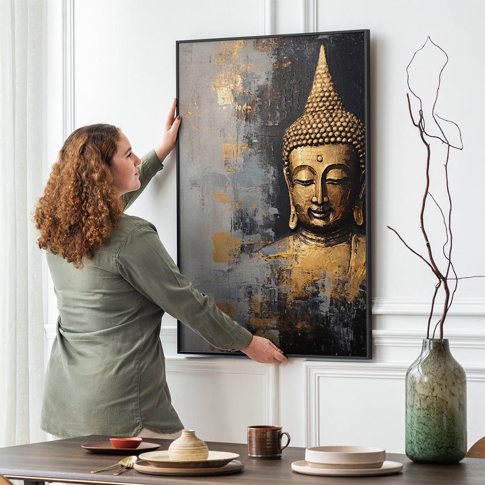 This artwork adds harmony and elegance to any room; its timeless allure works well with modern interiors. Purchase "Modern Buddha" by Crib of Art today!