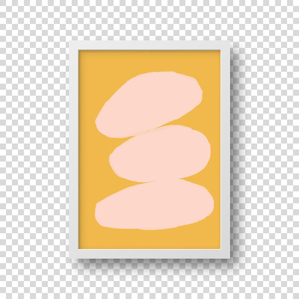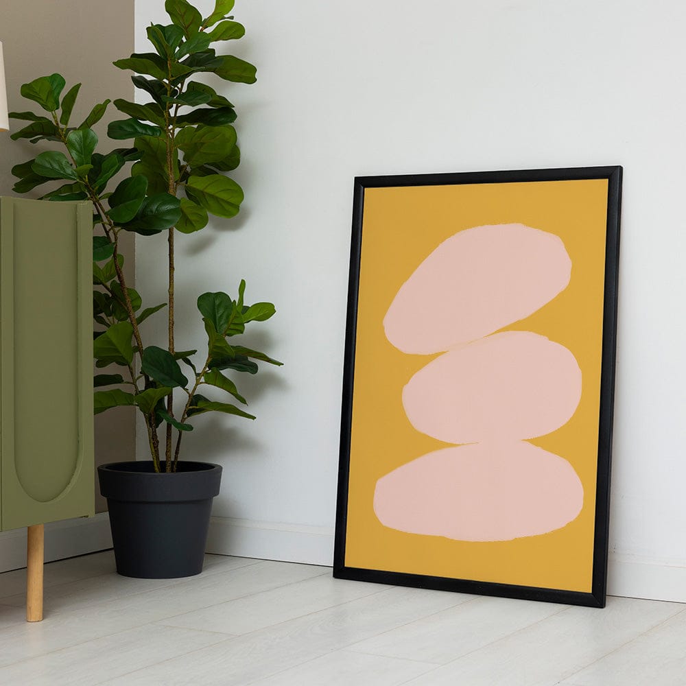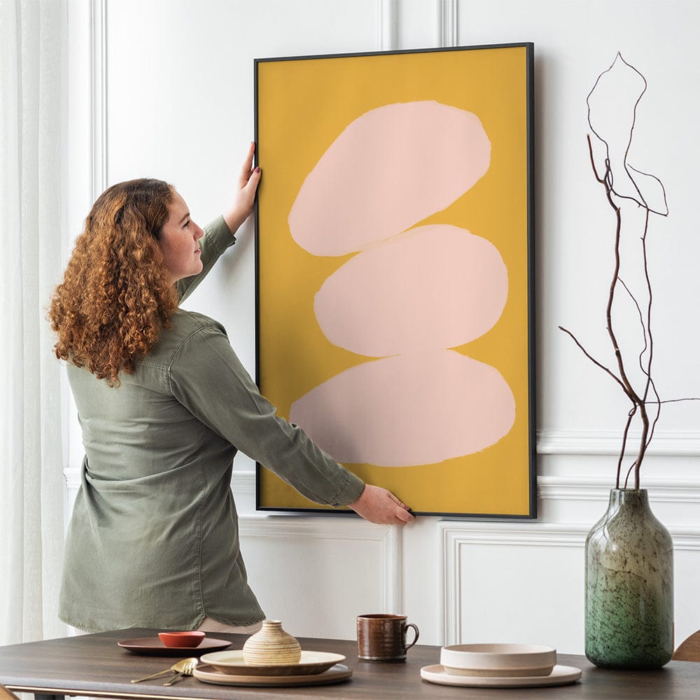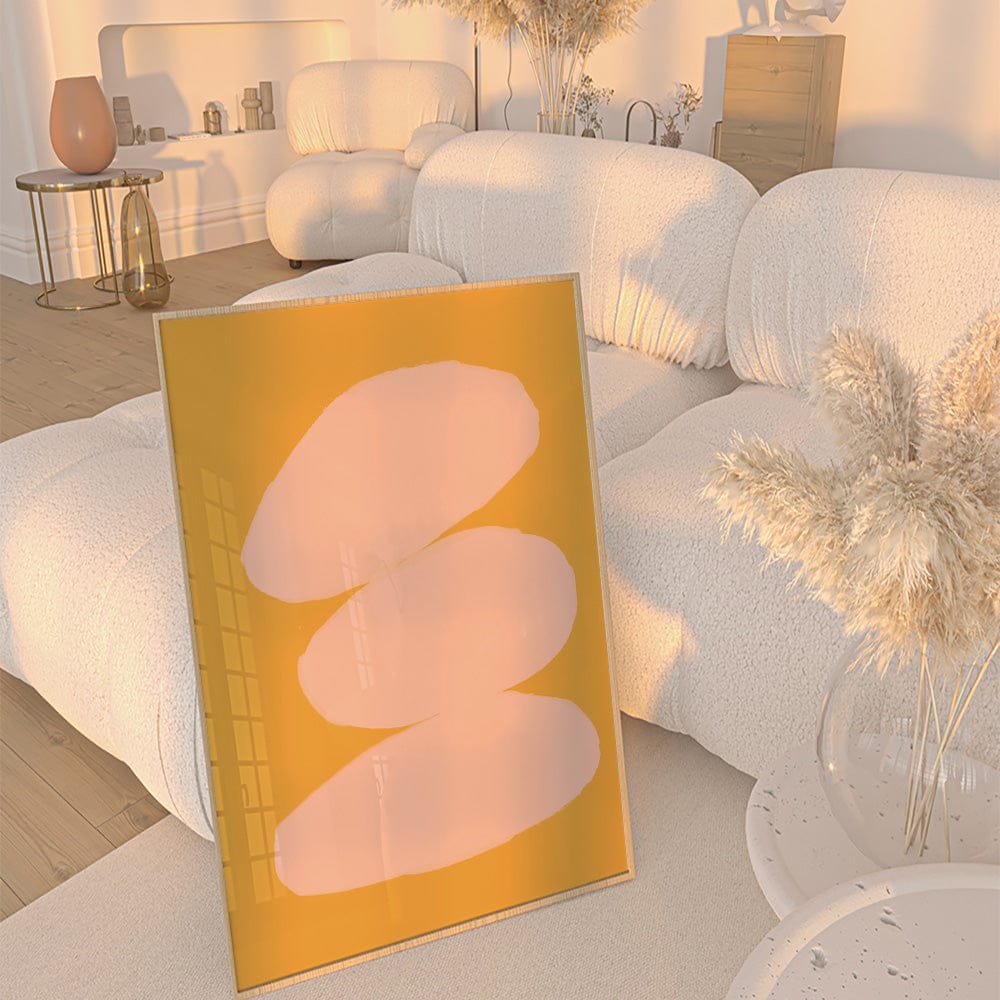 Soft blush tones rest atop a golden mustard backdrop, evoking warmth and timeless elegance. The clean, minimalist design captivates with its quiet sophistication. Invite a sense of poised artistry into your living space.