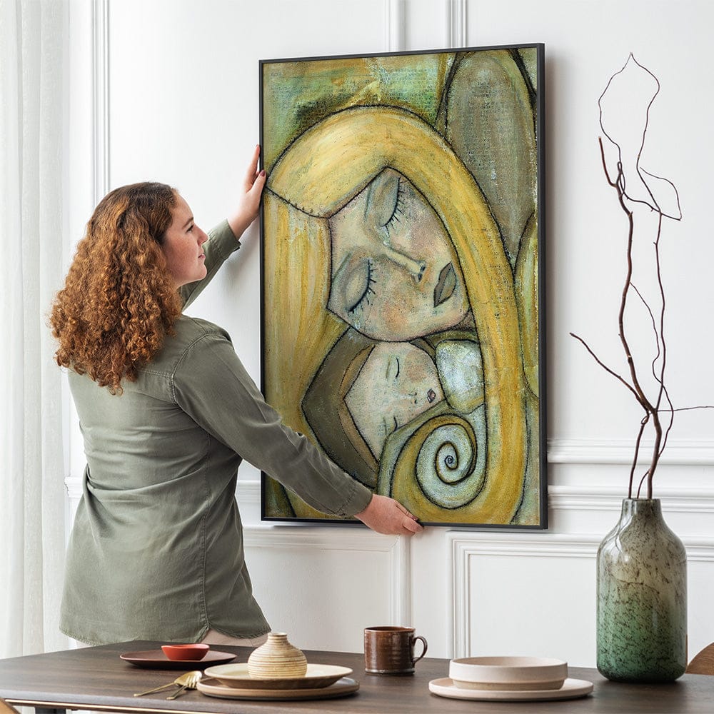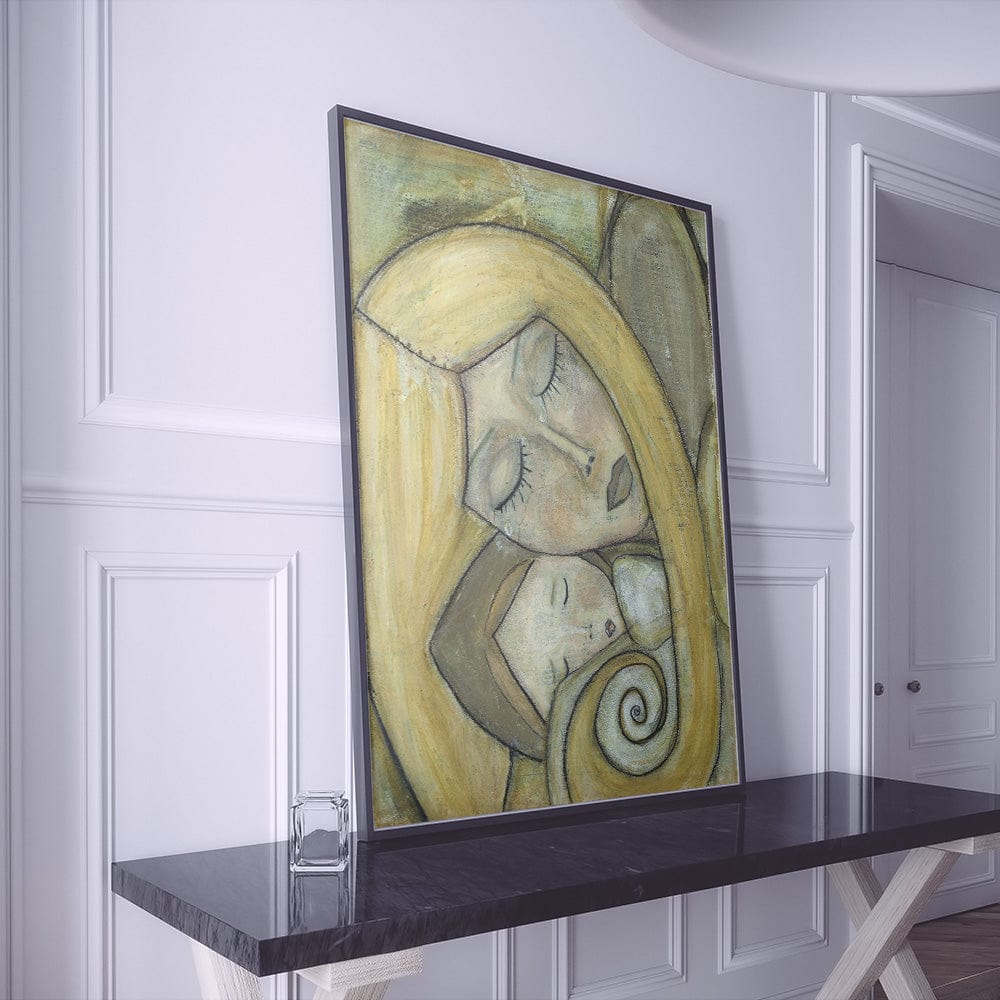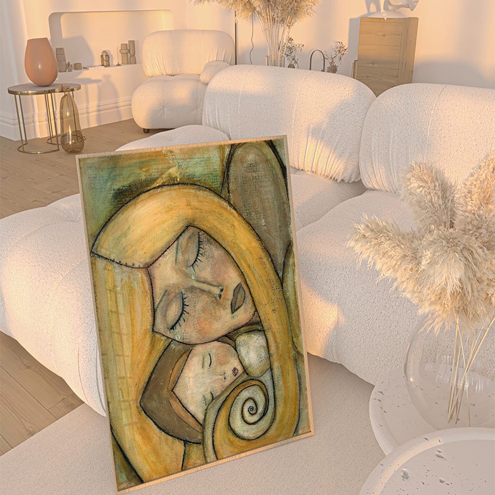 This evocative piece captures the boundless connection between mother and child, radiating love, safety, and devotion. Each delicate brushstroke mirrors the deep, nurturing bond that shelters and comforts. A perfect addition to any space craving warmth and emotional depth.
