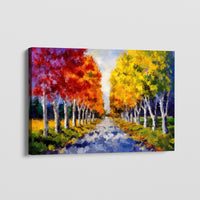 Experience serene anticipation when you purchase "Almost Autumn." This artwork leads you down a tranquil pathway, flanked by trees in their autumn glory, guiding you towards the promise of new beginnings. Imagine the quiet journey and the hopeful beauty of the season's change, filling your space with calm and optimism.