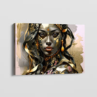 Experience the profound depth of "Amber Gaze," a mesmerizing portrait that enchants with its abstract lines and rich hues of gold and amber adorning the face of a woman of color. Her amber eyes hold a gaze that penetrates the soul, evoking a sense of mystery and introspection. Bring an aura of elegance and sophistication into your space with this exquisite artwork. Buy this masterpiece now and grace your walls with its timeless beauty.