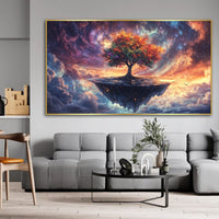 This captivating piece invites you to imagine the delicate balance between earth and sky, symbolizing the heart of the universe. Feel the energy of this floating tree as it stands firm amidst a cosmic dance, embodying serenity and strength. The vibrant colors evoke a sense of wonder and contemplation, perfect for sparking inspiration in any room.