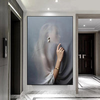 Perfect for a bedroom or dressing area, this piece adds a touch of glamour and mystery to any space. Purchase now and own this masterpiece, inviting the enchanting "Beauty Behind the Curtain" into your home. Buy today to elevate your decor with this captivating artwork.