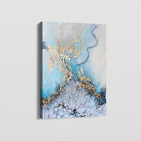 The intricate marble-like textures mirror the ever-changing tides, blending gentle ripples with cascading veins of brilliance. Its golden accents shimmer like sunlight on a tranquil sea, infusing the artwork with a touch of opulence.