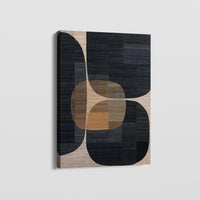 This piece perfectly balances deep, moody tones and soft, golden warmth. It speaks to those who appreciate modern sophistication and minimalist design. The interplay of shapes and muted hues creates a sense of harmony and depth, effortlessly complementing any contemporary space.