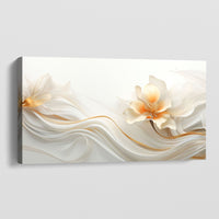 Behold the elegant shimmer of "Satin Fleurs." This artwork presents white and orange flowers undulating like smooth satin in a gentle breeze. The wavy strokes create a flowing, serene effect, evoking the softness and grace of silk. It adds a touch of refined beauty to any space.