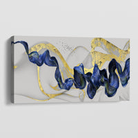 Welcome to the enthralling world of "See the Mountain," where abstract art transports you to the grandeur of nature's peaks. This piece of art depicts waves and lines in dark blue and gold, reminiscent of the magnificence of mountain ranges. Bask in the splendor of "See the Mountain," a work of art that inspires complete awe and fascination.