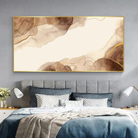 This minimalist piece flows with warmth and sophistication, merging sepia tones with gilded whispers. It evokes a sense of timelessness and grace, inviting a calm yet refined atmosphere to any room. Each brushstroke speaks softly of balance and understated luxury, creating a harmonious space that feels both modern and serene.