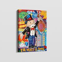 Step into a world of artistic creativity with "The World is Yours". Playfully combines nostalgia and modernity. This dynamic masterpiece features the iconic Monopoly game mascot. Embellished in a graffiti abstract random drawing style. The artist's creative brilliance brings the beloved mascot to life in a fresh and edgy manner. Blurring the lines between classic board games and modern urban art.