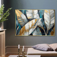 This artwork brings lush tropical leaves to life with a hint of golden shimmer, blending vibrant greens with opulent accents. It transforms any room into a vibrant oasis, where each glance reveals a hidden layer of elegance and luxury. The golden touch infuses a sense of exotic allure and sophistication.