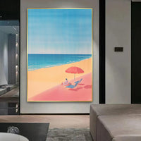 This artwork expresses the calm splendor of a lone beachgoer, wrapped in quiet reflection by the vast, colorful shore. The clear sky and soft waves evoke a sense of calm, serving as a perfect reminder of quiet moments of reflection and self-discovery. Allow this piece to bring a touch of tranquil elegance to your home, providing a daily escape to your own private paradise.