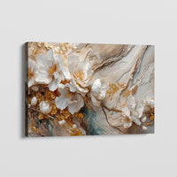 Get ready to infuse your space with grace with "White Petal Marble." This exquisite artwork features beautiful white and gold flowers presented in a marble-like manner. The combination of delicate petals and luxurious gold accents creates a sophisticated and elegant visual effect. Perfect for any space, this piece adds a touch of refined beauty and charm.