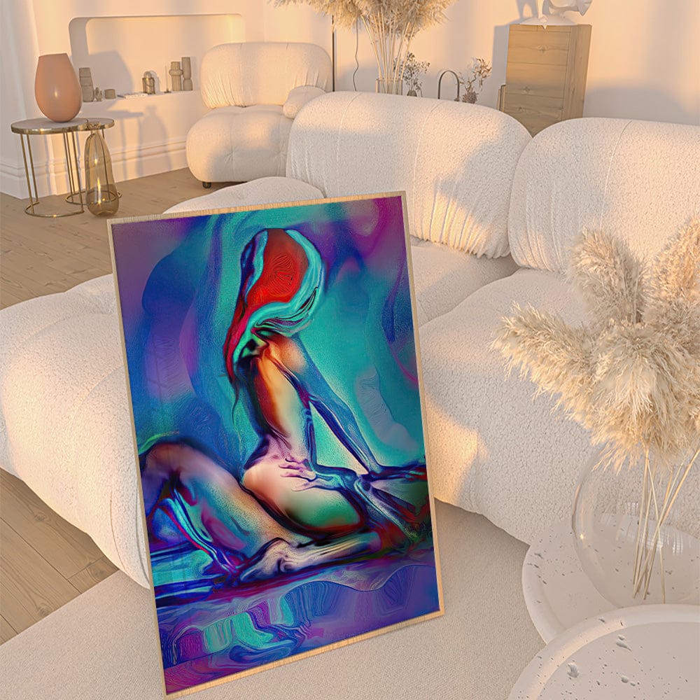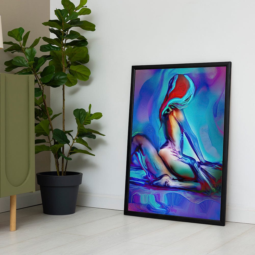 Dive into a world of emotion and artistic expression with "Moment Of Energy." A striking art painting that beautifully captures the raw passion and intimacy between two lovers. The interplay of vivid hues adds a touch of mystique to the scene. Bathed in an enchanting watercolor style blending shades of blue, red, and purple.