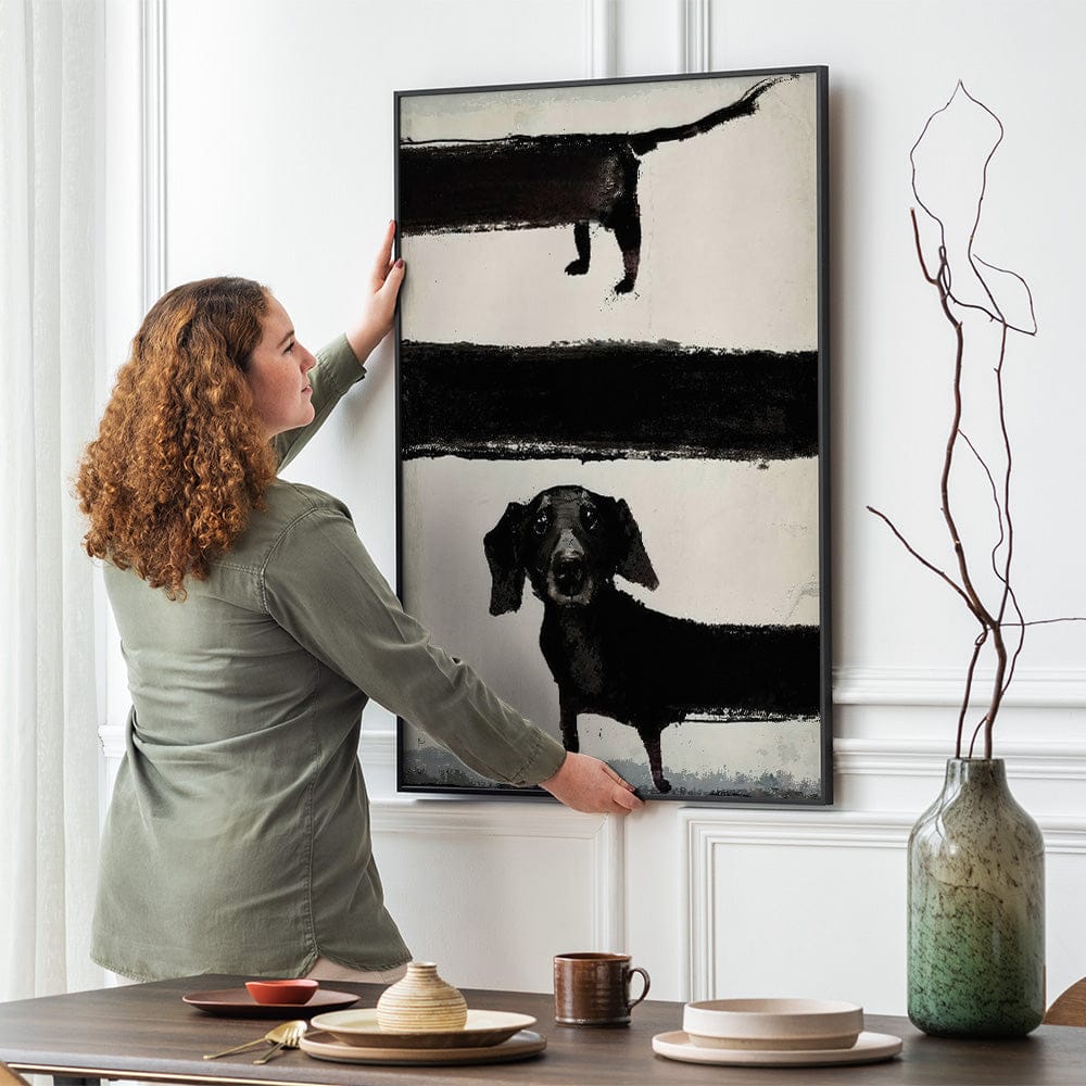 "Sausage Dog" playfully brings charm and whimsy into your space with its bold simplicity.