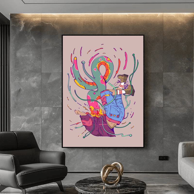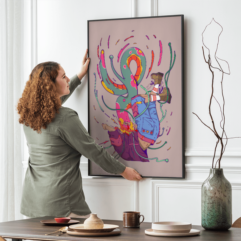 • Framed canvas: Canvas artwork set inside a floating frame, creating depth and a gallery-style feel.