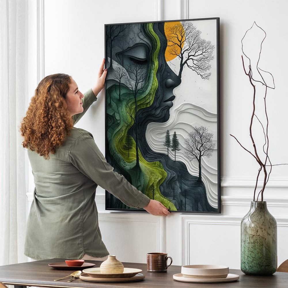 - Framed canvas: Canvas artwork set inside a floating frame, creating depth and a gallery-style feel.