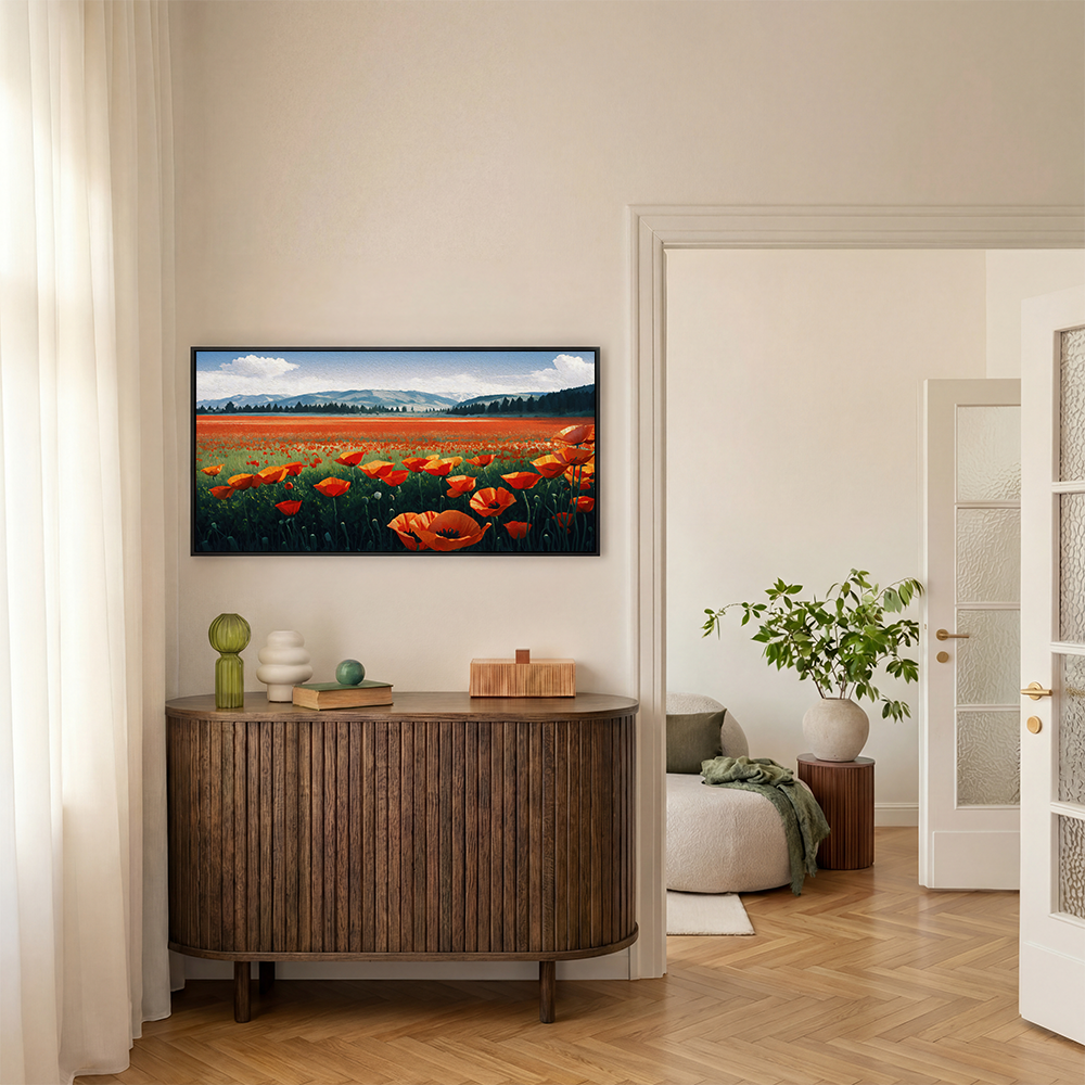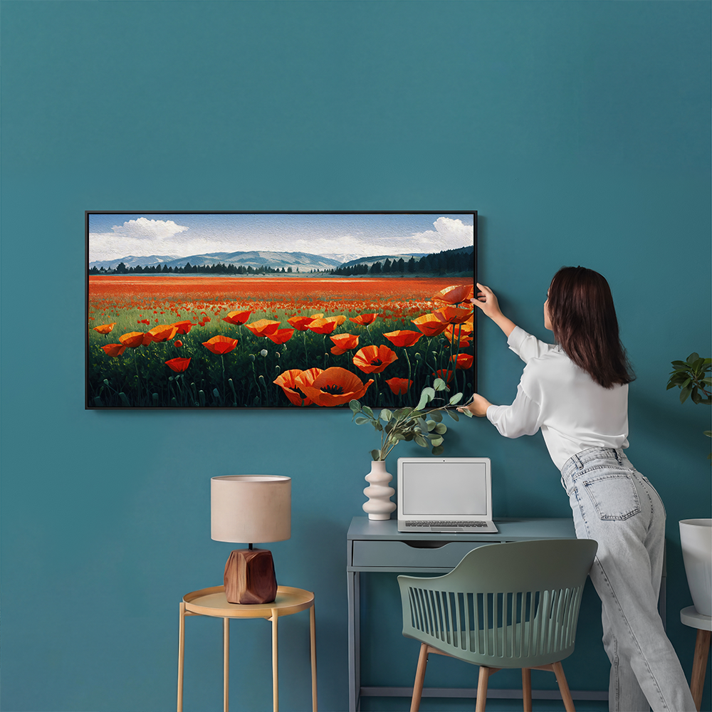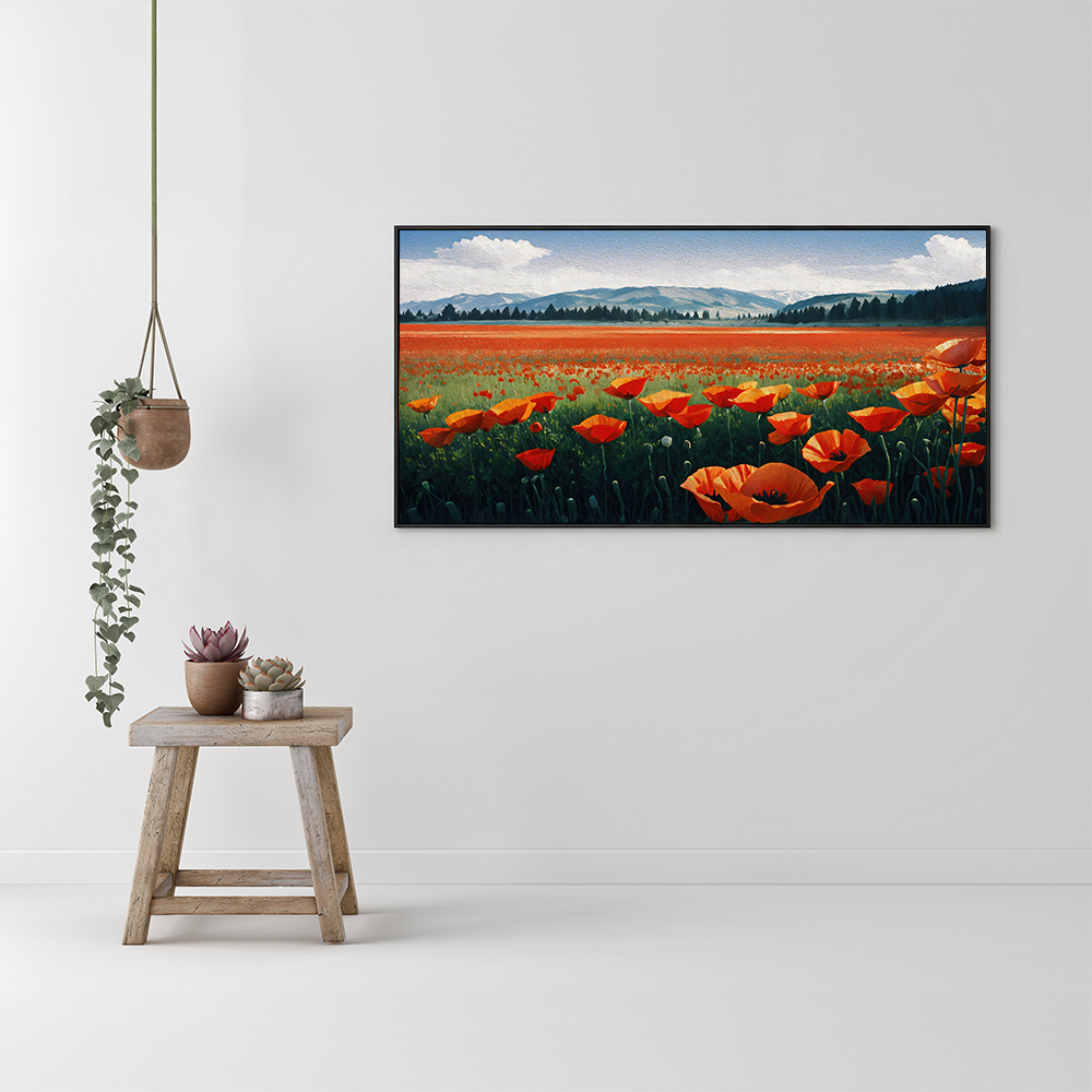 “Poppy Meadows” by Crib of Art celebrates the beauty of nature in full bloom, offering a vibrant and uplifting view that brings color, life, and freshness to any space.