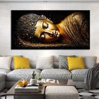 Reflects quiet strength, capturing the Buddha in a state of peaceful repose. Gentle golden hues soften the canvas, highlighting the calm expression and delicate contours of the figure. The balance of light and shadow creates a soothing atmosphere, evoking a sense of inner harmony.