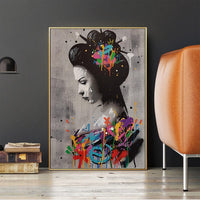 Capture the grace and allure of the Far East with "Graffiti Asian Woman," a captivating portrayal of a Japanese geisha in a unique graffiti-inspired art painting. This piece effortlessly blends tradition with contemporary flair, it's an emotive journey into the beauty of Asian heritage.