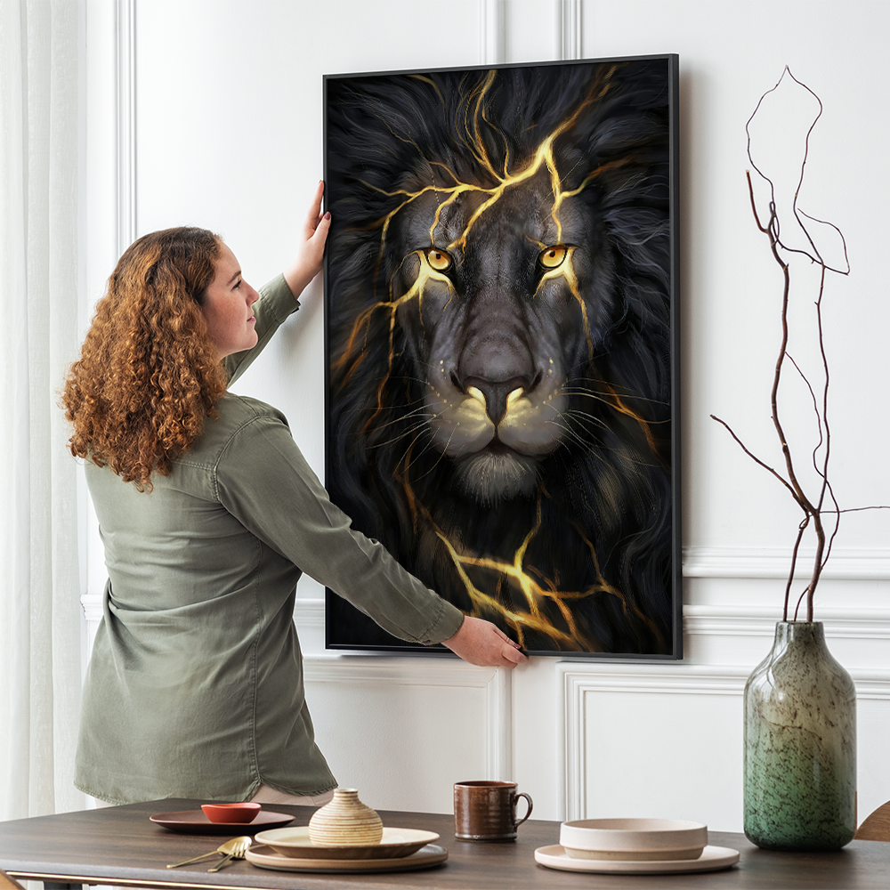 Alle unsere Rahmen verfügen über ein einfaches Montagesystem, mit dem Sie Ihr Gemälde an der Wand befestigen können.