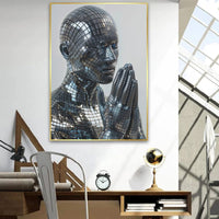 Lassen Sie sich von „Ensitti“ verzaubern. Dieses atemberaubende Porträt fängt die Essenz kosmischer Eleganz ein. Der tiefschwarze Teint der Frau strahlt eine zeitlose Anziehungskraft aus. Mit Gold verziert, das ihre Gesichtszüge betont. Sie strahlt einen ätherischen Glanz aus, der den Betrachter in seinen Bann zieht.