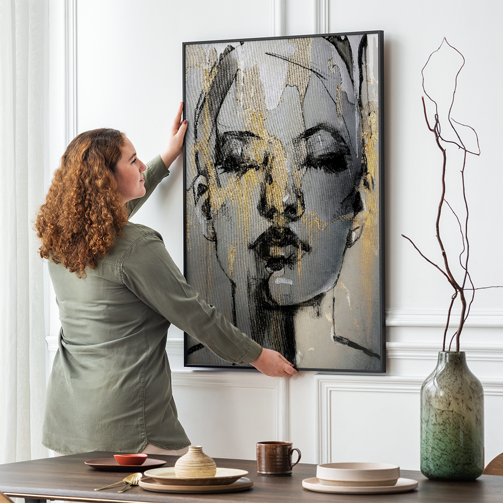 Alle unsere Rahmen verfügen über ein einfaches Montagesystem, mit dem Sie Ihr Gemälde an der Wand befestigen können.