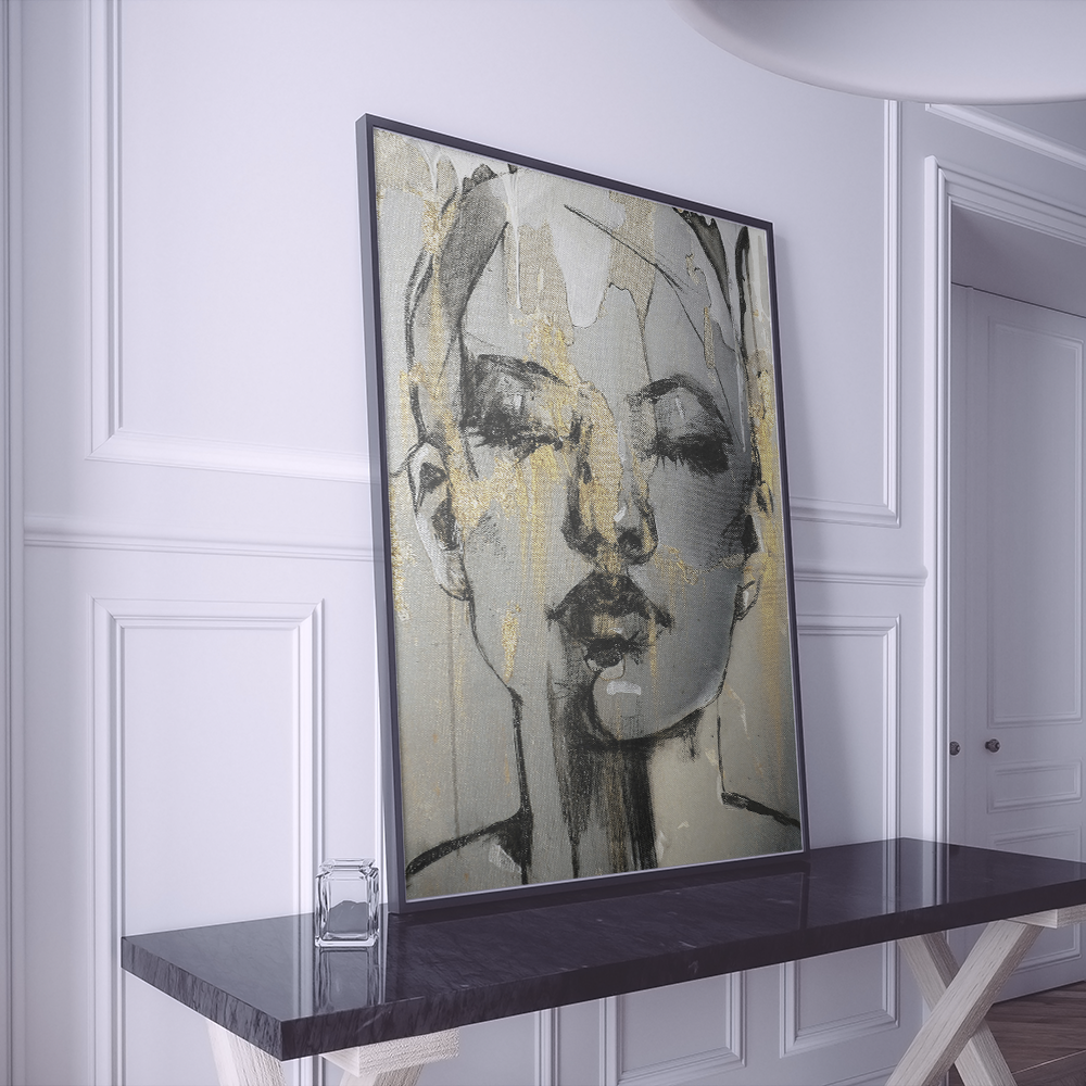 Lassen Sie sich von der Magie der „nordischen Schönheit“ verzaubern. Lassen Sie sich von Ihren Sinnen fesseln und in die fesselnde Welt der nordischen Folklore entführen. Die dunkelschwarzen Linien verflechten sich zu einem Teppich voller Emotionen. Wir laden Sie ein, die Tiefen der Seele der Frau zu erkunden. Mit geschlossenen Augen scheint sie sich in einem Reich der Selbstbeobachtung und Ruhe zu befinden. Damit ist das Gemälde eine ideale Ergänzung für einen beruhigenden Zufluchtsort oder einen Meditationsraum.
