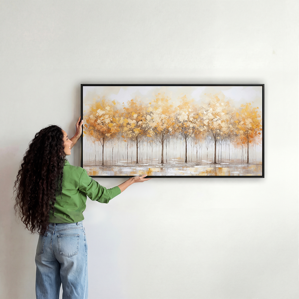 Alle unsere Rahmen verfügen über ein einfaches Montagesystem, mit dem Sie Ihr Gemälde an der Wand befestigen können.