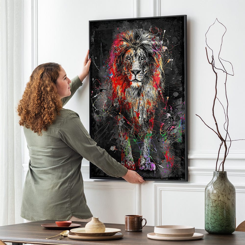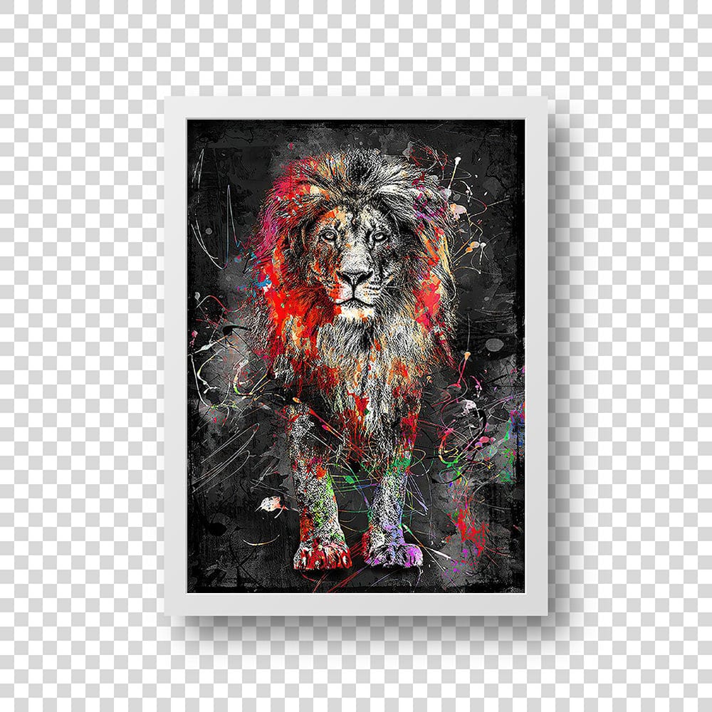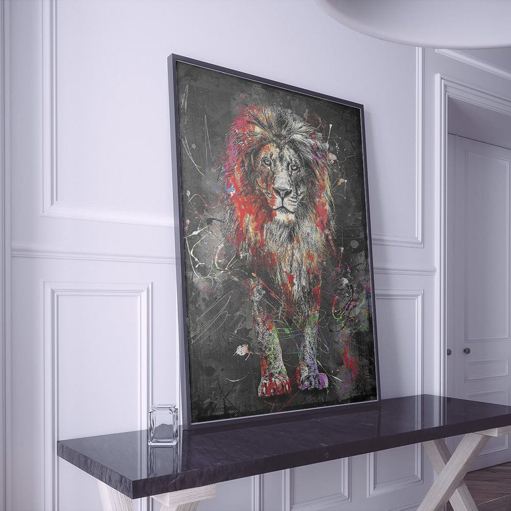 Egal, ob Sie ein Kunstliebhaber sind oder einfach nur den Reiz der Wildnis schätzen. Hauchen Sie Ihrer Umgebung Leben ein. Nutzen Sie die Kraft der Abstraktion und lassen Sie den Vierten Löwen über Ihren Raum herrschen. Inspiriert Mut und Stärke mit seiner fesselnden Farbdarstellung und wilden Präsenz.