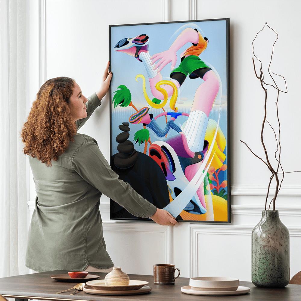 - Canvas: Artwork printed on canvas and stretched over a wooden frame for a clean, modern look.