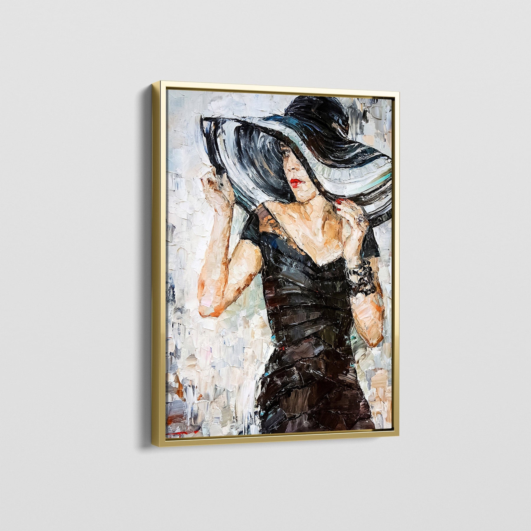 Experience refined sophistication when you obtain "Classy Hat." Let the sophisticated charm of a young lady in a black dress and her striking hat grace your space with a touch of refined style. This artwork embodies classic beauty and poise, evoking a sense of grace and allure.