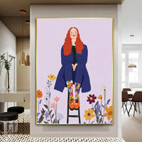 This charming piece exudes the beauty of simplicity, with floral patterns and a serene expression combining in a gentle bloom of creativity. The poised figure seated among flowers exudes strength and grace while celebrating nature's soft wonders. It is ideal for those who appreciate subtle yet powerful artistry, adding warmth and character to any setting.