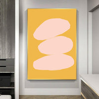 Soft blush tones rest atop a golden mustard backdrop, evoking warmth and timeless elegance. The clean, minimalist design captivates with its quiet sophistication. Invite a sense of poised artistry into your living space.