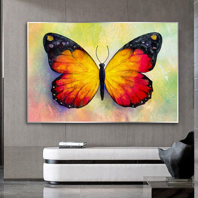 This artwork captures the radiant beauty of a butterfly, blending warm hues of yellow, orange, and red with a touch of black. Each delicate wing is painted to reveal intricate patterns, evoking a sense of freedom and transformation. Bring the vibrancy of this masterpiece into your home, reminding you of the fleeting, colorful moments in life.