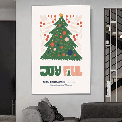 Whimsical and heartwarming, this festive piece captures the innocence of the holidays with its delightfully decorated Christmas tree and playful type design. Soft blush tones and classic greens bring nostalgic charm, perfect for filling your space with yuletide cheer.