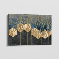 "Abstract Fusions" is a symphony of gold lines and hexagons that seamlessly blend geometry and artistry. This captivating masterpiece, ideal for your dining room, effortlessly becomes the conversation starter your space craves. The interplay of shapes and the warm glow of gold bring your surroundings to life, creating a focal point that screams sophistication.