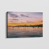 Breathe in the calm twilight view of the city with "Coastal Sunset" by Crib of Art.