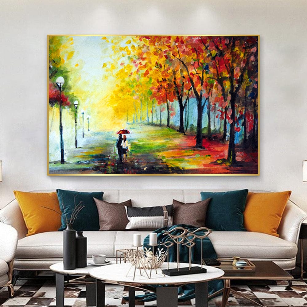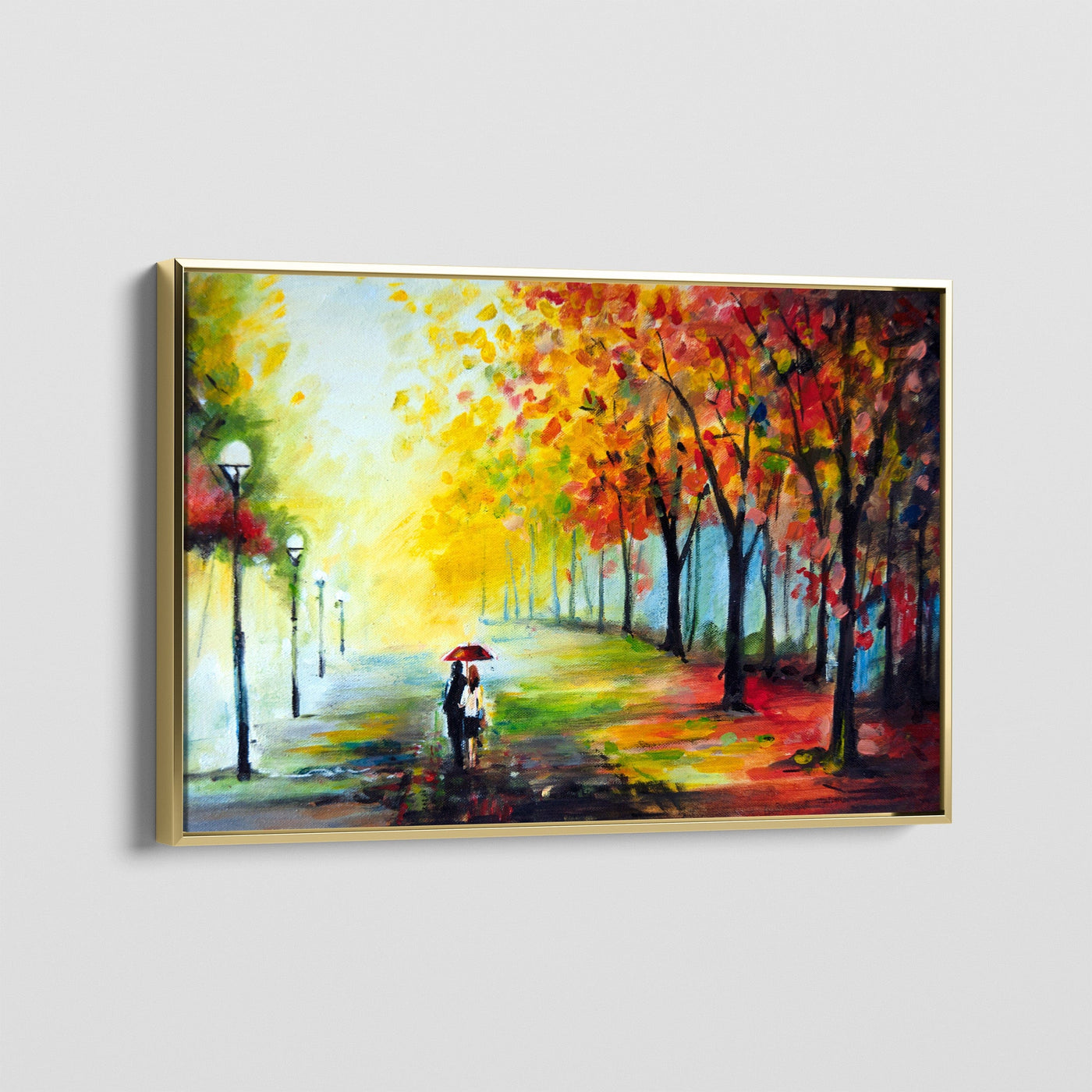 This artwork captures the tender embrace of a season that turns leaves into fiery gems and cool breezes into soft melodies. It brings to life the romance of fall, where every step feels like a dance on a canvas of vibrant hues.