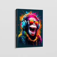"Funky Pop" features a stylish chimpanzee sporting Ray-Ban glasses and headphones, surrounded by vibrant splashes of color. This urban pop culture artwork brings energy and flair to any space, capturing the essence of modernity and fun. Each splash of color tells a story of creativity and spontaneity, inviting you to join the funky vibe. Add a splash of color to your surroundings. Purchase this vibrant “Funky Pop” now and let it bring joy and energy into your home.