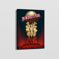 Add a touch of cinematic boldness to your home with "World is Yours." This striking poster replica of the iconic movie Scarface captures the essence of Tony Montana's legendary rise. Featuring vivid colors and dramatic imagery, it's a perfect piece for movie lovers and art enthusiasts.
