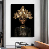 "Belma Belma," a regal masterpiece, captures a black queen in deep contemplation, adorned with the most majestic crown against a backdrop of profound darkness. Picture it gracing your powder room or walk-in closet, transforming these intimate spaces into havens of strength and elegance.