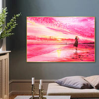 This captivating piece invites you to wander under a sunset that bathes the world in soft pink hues, evoking serenity and wonder. Feel the warmth of the horizon blending seamlessly with the water, where every brushstroke tells a story of calm evenings and quiet reflections.