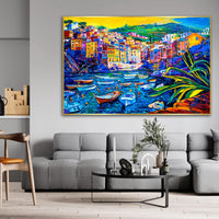 This piece evokes the warmth of coastal summers and the joy of timeless adventures. Let its bold colors and intricate details bring a burst of life to your walls. Purchase "Boat City" by Crib of Art today and transport your space to the heart of a seaside paradise.