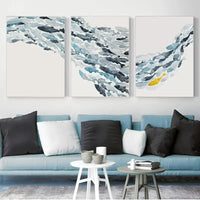 Get ready to submerge into peacefulness with "Calm Currents." This captivating watercolor painting spans three frames and depicts a lively school of colorful fish flowing like an ocean current. The vibrant hues and dynamic movement create a refreshing and serene scene. Perfect for any space, this artwork brings a touch of oceanic beauty and peace.