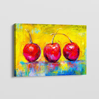 Indulge in a burst of vitality with “Cherry Pop.” This painting brings together the vibrancy of luscious red cherries against a sunlit yellow backdrop, evoking a sense of joy and exuberance. It’s perfect for infusing your room with a pop of color and a splash of fun.