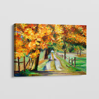 Let this picturesque landscape bring a sense of nostalgia and seasonal joy to your walls. Purchase "Country Road" today and add a radiant touch of nature's splendor to your space.